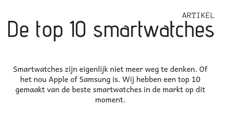 De top 10 Smartwatches Dit artikel staat ook in: Code® Magazine #1 September 2018 Lees verder: Code® Magazine #1 September 2018 Dit delen: Klik om te delen op X (Opent in een nieuw venster) X Klik om te delen op Facebook (Opent in een nieuw venster) Facebook Vind-ik-leuk Aan het laden... Gerelateerd